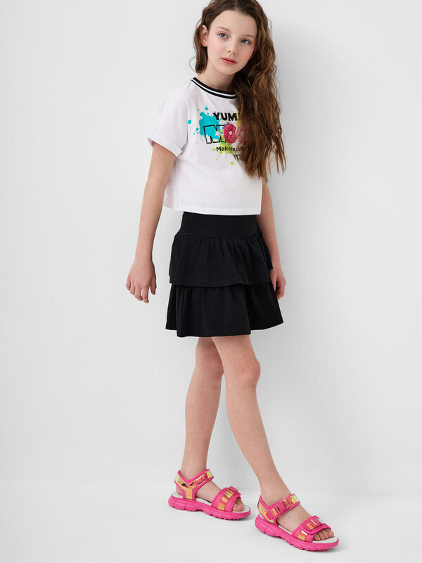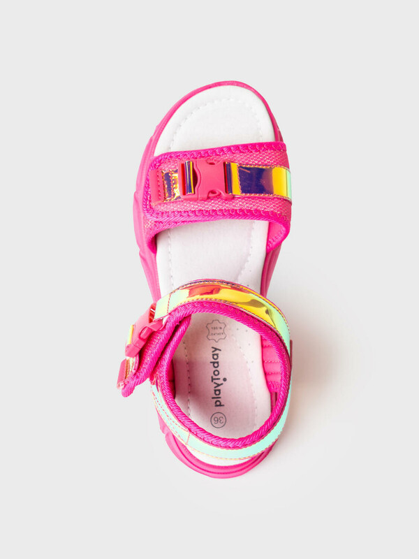 Сандалии спортивного стиля для девочки подростка. Босоножки выполнены из дышащего текстиля и зеркальной искусственной кожи. Удобные ремни с липучками позволяют регулировать обувь на любой подъем. Текстильная подкладка c высоким содержанием хлопка 80% обладает высокой гигроскопичностью. Стелька из натуральной кожи с анатомическим элементом поддерживает свод стопы в правильном положении. Модель имеет гибкую и легкую подошва из ТПР с противоскользящим протектором.