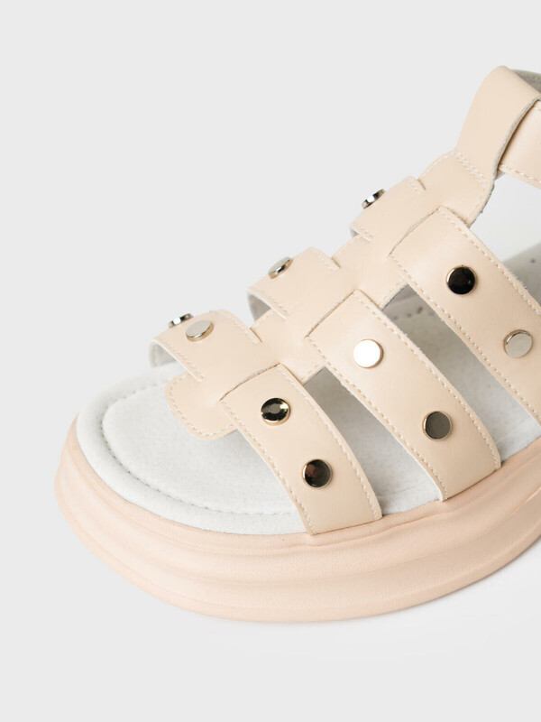 Трендовые ремешковые сандалии для девочки подростка. Модель декорирована металлическими хольнитенами. Удобный ремень с липучкой позволяет регулировать обувь на любой подъем. Задний ремень имеет мягкий "воротничок", чтобы ремень не натирал ногу. Подкладка выполнена из натуральной кожи. Стелька из натуральной кожи с анатомическим элементом поддерживает свод стопы в правильном положении. Модель имеет легкую подошва из ЭВА.