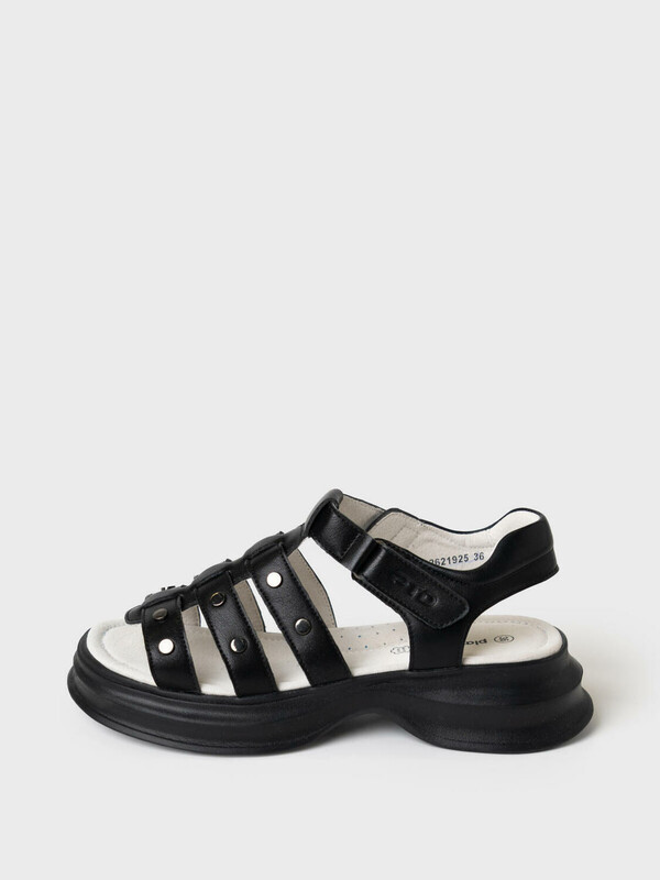 Трендовые ремешковые сандалии для девочки подростка. Модель декорирована металлическими заклепками. Удобный ремень с липучкой позволяет регулировать обувь на любой подъем. Задний ремень имеет мягкий "воротничок", чтобы ремень не натирал ногу. Подкладка выполнена из натуральной кожи. Стелька из натуральной кожи с анатомическим элементом поддерживает свод стопы в правильном положении. Модель имеет легкую подошва из ЭВА.