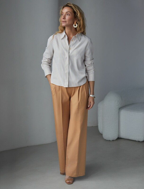 Стильная укороченная блузка белого цвета создана для комфорта в любой ситуации. Эластичный хлопок делает модель приятной для тела и хорошо дышащей, что особенно важно в течение долгого дня. Свободный крой не ограничивает движения, подходит на любую фигуру и гармонично смотрится в разных образах. Повседневная блузка держит форму даже после продолжительной носки, что помогает всегда выглядеть аккуратно. На чуть удлиненной спинке выполнена декоративная складка, придающая дополнительный объем и интересный силуэт. Отложной воротник придает классический вид,, подходящий для офисных будней. Особенно стильно рубашка смотрится в непринужденных, городских или повседневных комплектах.