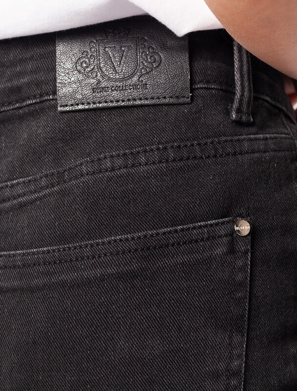 Черные слегка укороченные супер-эластичные джинсы skinny. В состав добавлены стрейчевые волокна, поэтому материал тянется, а модель комфортно садится по фигуре и не сковывает движения. Хорошо будут в сочетании с футболкой, блузкой или свитшотом и с обувью на низком каблуке.