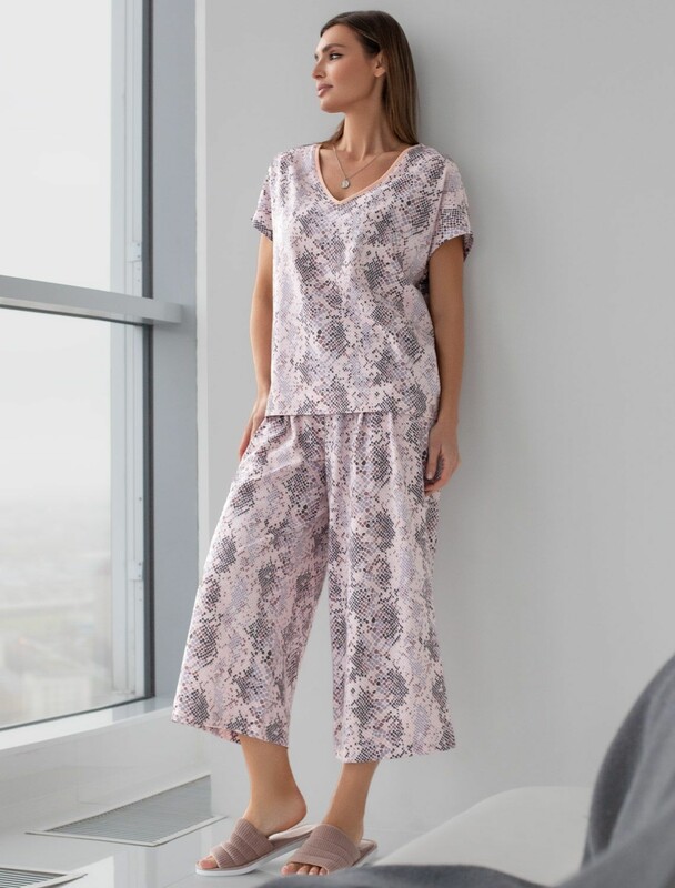 Комфортные укороченные широкие брюки кофейно-пудрового цвета на тонкой резинке из 100% хлопка – отличный выбор для отдыха и домашней носки. Эти свободные брюки обеспечивают максимальную свободу движений благодаря широкому крою. Эластичная резинка в области талии гарантирует удобную посадку и индивидуальное прилегание по фигуре. Защипы добавляют выразительность образу и помогают сформировать актуальный силуэт, подчеркивая современные тенденции. Принт в виде листьев добавляет оригинальности. Тонкая хлопковая ткань пропускает воздух, создавая ощущение легкости и свежести в теплую и жаркую погоду. Повседневные брюки подходят для больших размеров, мягко скроют возможные недостатки фигуры, подчеркивая комфорт и стиль. Домашние брюки кюлоты отлично сочетаются с разными вариантами верхней одежды, поэтому их можно носить не только дома, но и на прогулках. Удобные брюки созданы для тех, кто ценит комфорт и практичность без лишних деталей. Благодаря свободному крою и натуральному материалу штаны идеально подходят для по