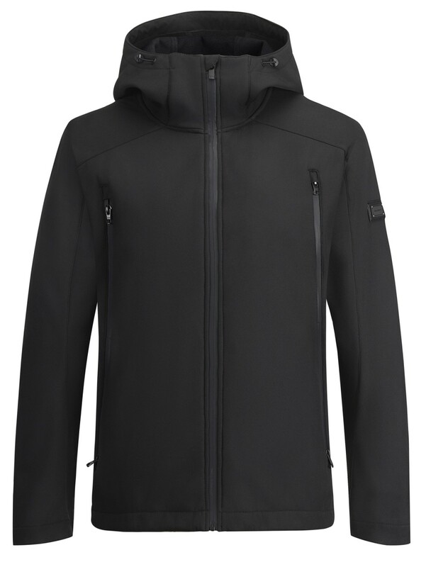 Главная страница - Каталог - Мужская одежда - Мужская верхняя одежда - Мужская верхняя одежда весна-осень - Ветровка мужская софтшелл виндстоппер с капюшоном спортивная черного цвета 9613_1Ch