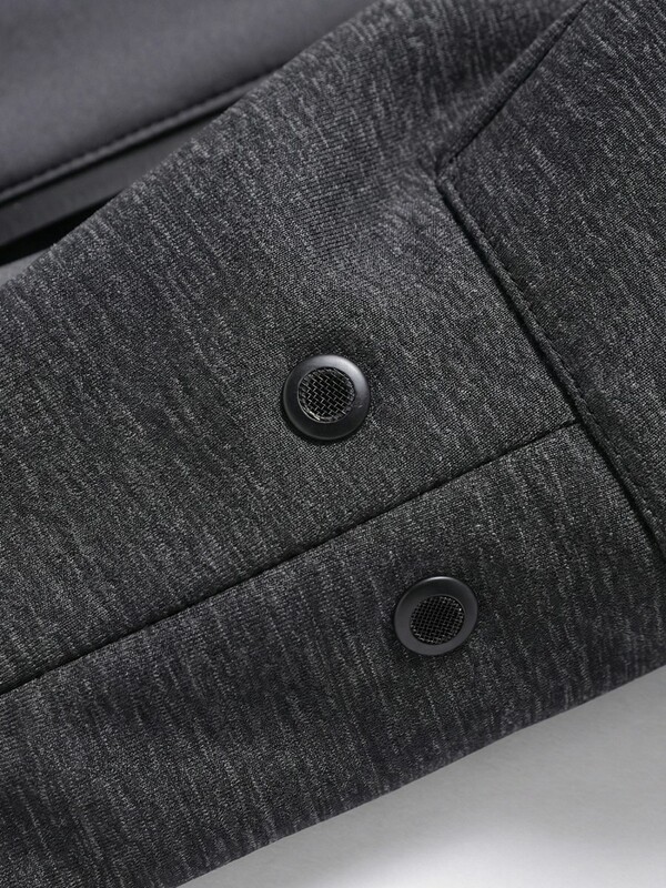 Главная особенность модели — ткань с отражающими вкраплениями. При попадании света в тёмное время суток поверхность даёт мягкий отражающий эффект, повышая заметность и добавляя современный технологичный вид.
