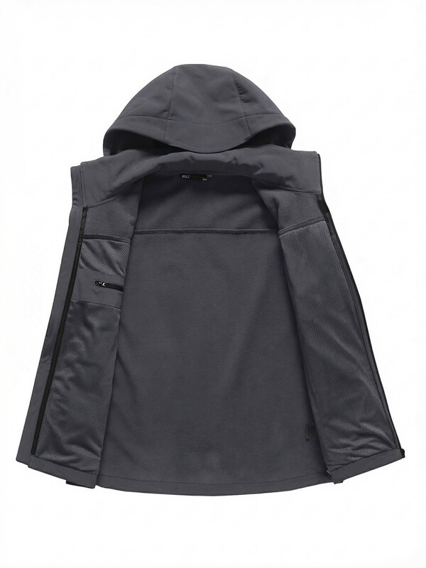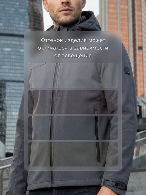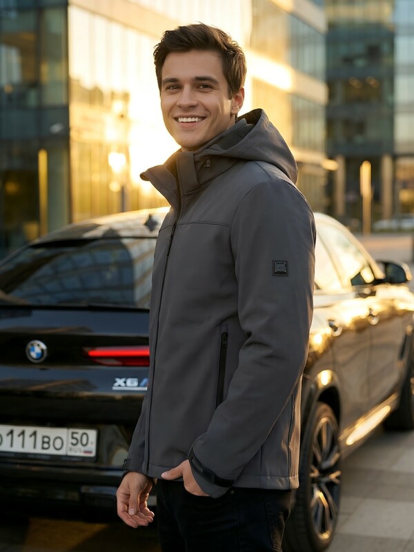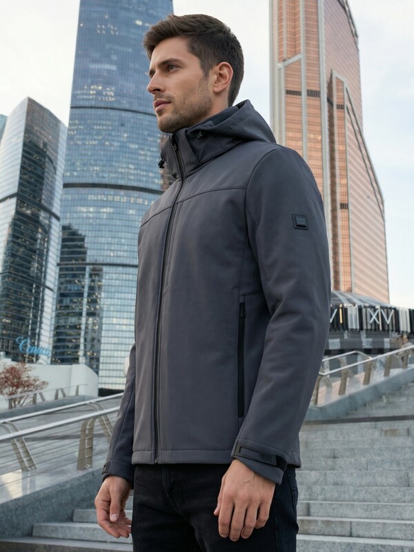 Верх выполнен из технологичной ткани софтшелл с эффектом виндстоппера. Материал плотный, эластичный и приятный на ощупь, надежно защищает от ветра и влаги, при этом сохраняет хорошую воздухопроницаемость. Внутренняя часть дополнена мягкой флисовой подкладкой, которая удерживает тепло и делает куртку особенно комфортной при ежедневной носке.