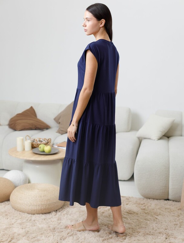 Стильное платье миди с V вырезом привлекает внимание своим нежным пудровым цветом и натуральным материалом — 100% премиальным хлопком. Такой выбор ткани обеспечивает отличное дышащее свойство, что делает платье идеальным для теплого времени года и домашнего использования. Особенностью модели является ярусный крой и А силуэт, которые красиво подчеркивают фигуру, скрывая возможные недостатки и акцентируя достоинства. Свободное платье отлично подойдет на большие размеры. Длина платья миди обеспечивает гармоничное сочетание комфорта и элегантности, подходя для разных поводов. V-образное декольте придает образу нежность и женственность, а ярусная конструкция добавляет образу эффект воздушности и динамичность. Материал натуральный и приятный к телу, создает ощущение легкости и свежести. Такое повседневное платье подчеркнет индивидуальность и стиль.