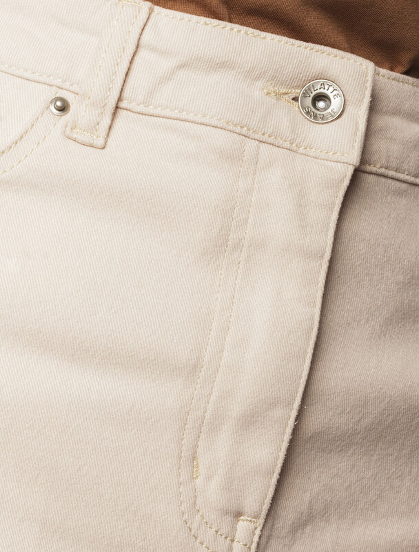Юбка А-силуэта выполнена из денима с эластаном. Модель с посадкой на талии расширяется к низу за счет вставок из декоративных клиньев, расположенных спереди и сзади. Изделие дополнено пятью карманами как у джинс и брендированным патчем из эко-кожи. Сочетается в комплекте с курткой D51.033