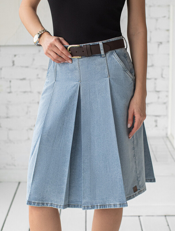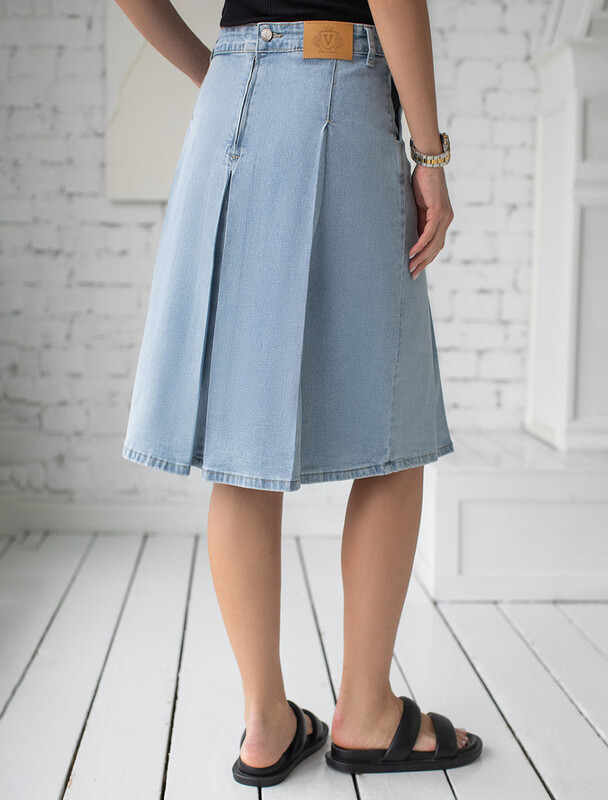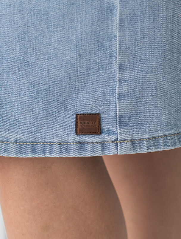 Юбка выполнена из эластичного денима. Расклешенная трендовая модель со средней посадкой и декоративной стиркой. Наличие эластана в составе изделия гарантирует комфорт и долговечность. Подходит для любой фигуры. Украшена фирменным патчем бренда.