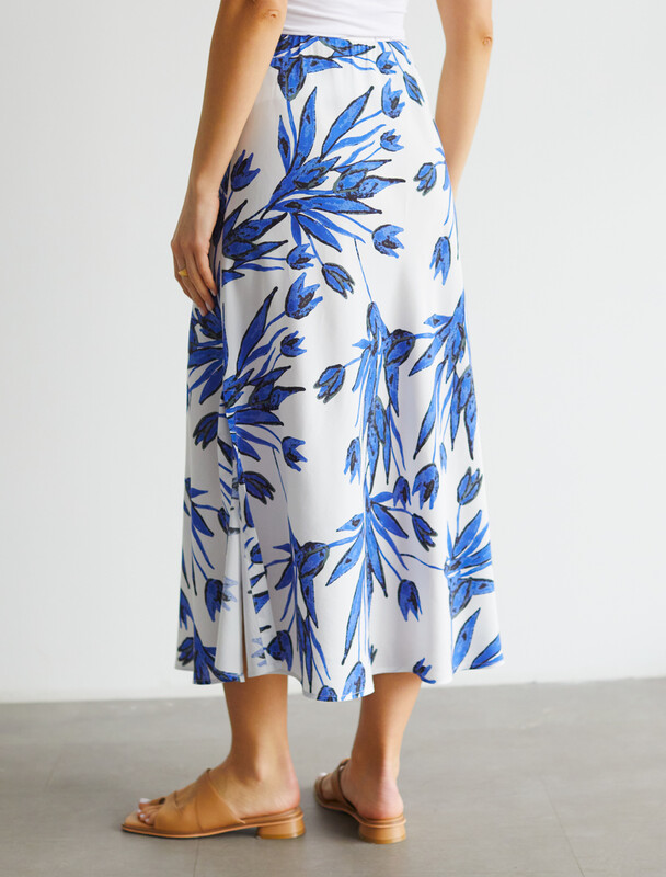 Юбка выполнена из вискозы с лиоцеллом. Модель А-силуэта кроенная по косой. Ткань изящно блестит и приятно охлаждает кожу в жаркое время года. Модель сечетается в костюме с топом D23.062 и блузкой D29.263