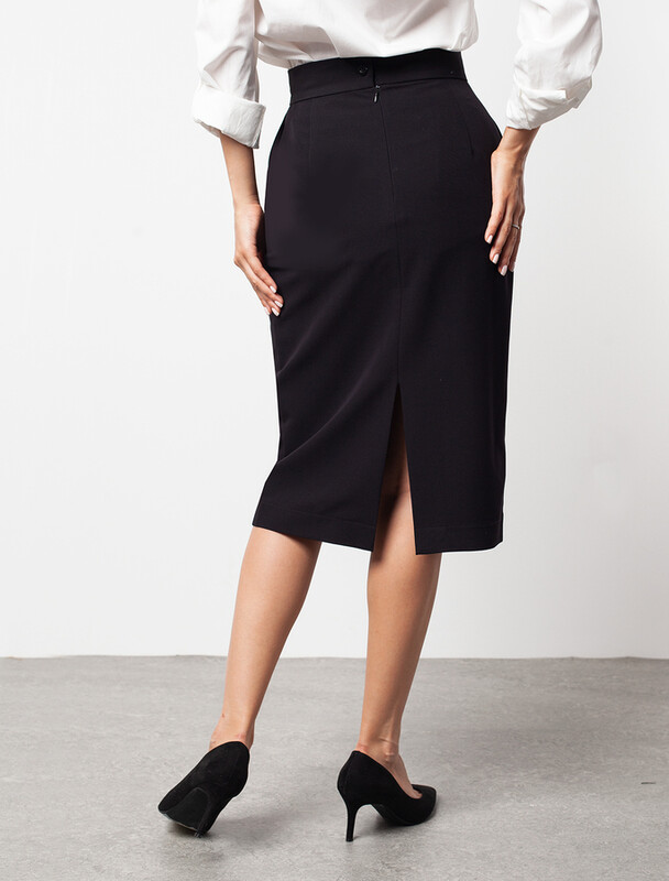 Юбка-карандаш выполненная из эластичной поливискозы, не мнется и не сковывает движения. Высокая посадка на талии и длина за колено, сделают любой образ элегантным. За счет шлицы, юбка не поднимается на верх и устойчиво сидит по фигуре. Изделие без подкладки, дополнено двумя боковыми карманами.