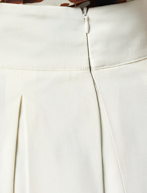 Женская юбка длины миди в складку расклешенного силуэта из хлопкового твила. Модель имеет застёжку на молнию. Визуально подчеркивает талию и бедра, подходит как для повседневного гардероба, так и для особого случая. Натуральный материал ткани обеспечивает высокий уровень комфорта, отличную гигроскопичность и воздухопроницаемость. Эластан в составе изделия минимизрует деформацию модели и продлевает срок носки.