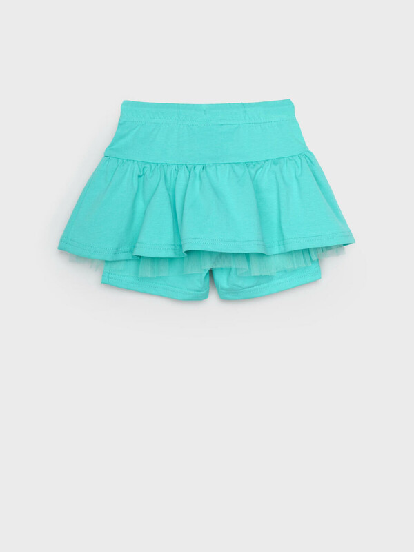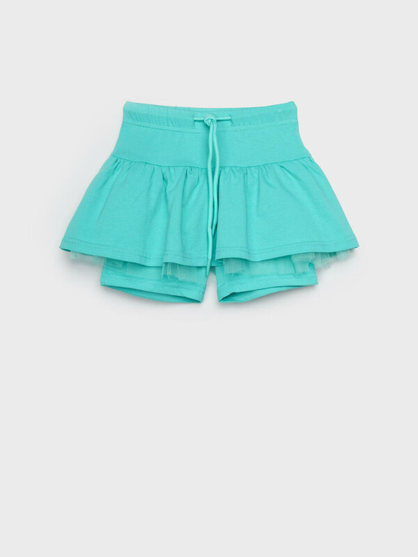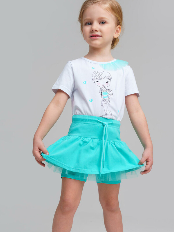 Юбка-шорты детские для девочки. Юбка-шорты из качественного и приятного на ощупь трикотажа джерси. Шорты на резинке со шнурком. Высокое содержание хлопка 95%. Благодаря наличию эластана в составе ткани изделие держит форму и меньше мнется. Декор из сетки. Модель выполнена из качественного и приятного на ощупь трикотажа.