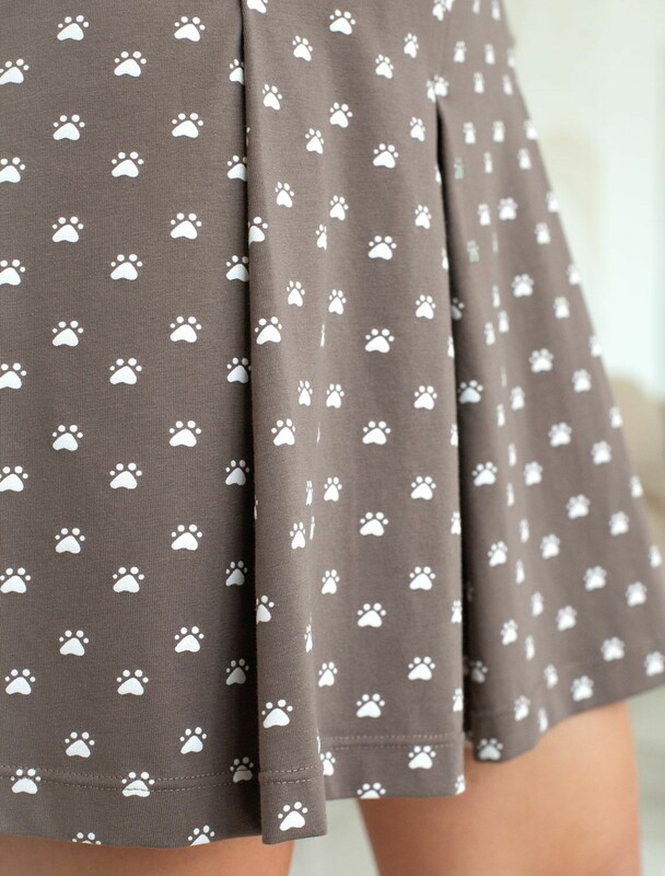 Мини юбка-шорты кофейного цвета с принтом выполнена из 100% хлопка, что обеспечивает комфорт и приятные ощущения на коже. Эластичный пояс с резинкой удобно сидит на талии, позволяя спокойно носить юбку в течение дня и дома. Длина юбки идеально подходит для создания романтичного и милого образа, при этом изделие сохраняет удобство и практичность. Юбка-шорты отлично справляется с ролью домашней пижамы благодаря мягкости материала и свободному крою. Романтичная и красивая юбочка станет замечательным дополнением к повседневному гардеробу, подчеркивая женственность и легкость.Практичные карманы добавляют функциональности. Эта удобная юбка-шорты с принтом в виде лапок универсальна и подходит как для дома, так и для отдыха, благодаря сочетанию стиля и удобства. Эластичный пояс обеспечивает оптимальную посадку, а мягкая ткань и складки скроет любые недостатки фигуры, создавая ощущение легкости и свободы движений.