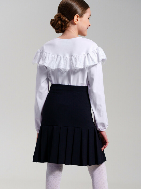 Классическая школьная юбка для девочки подростка. Синяя юбка в складку - стильный атрибут школьницы на каждый день! Именно такой и должна быть юбка в школу - лаконичной и удобной, простой и изящной, отлично сочетающейся с любым верхом. Юбка А-силуэта для школы выполнена из ткани non-iron, которая не требует глажки после стирки. Благодаря внутренней утяжке, юбка идеально садится по фигуре. Застежка на потайную молнию.