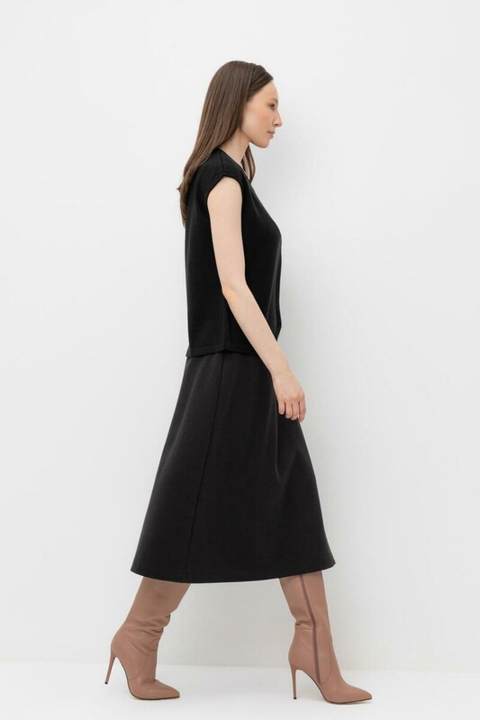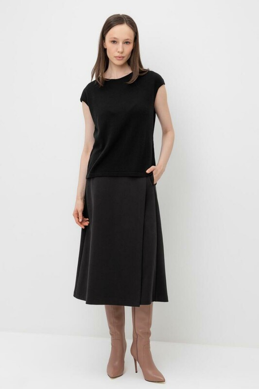 Трикотажная юбка на запах из плотного гладкого трикотажа интерлок, произведенного из высококачественного гребенного хлопка. В составе 80% натурального хлопка и 20% полиэстера, при этом полиэстер ввязан внутрь по особой технологии и не соприкасается с кожей. Изделие сохраняет цвет и форму после многократных стирок.