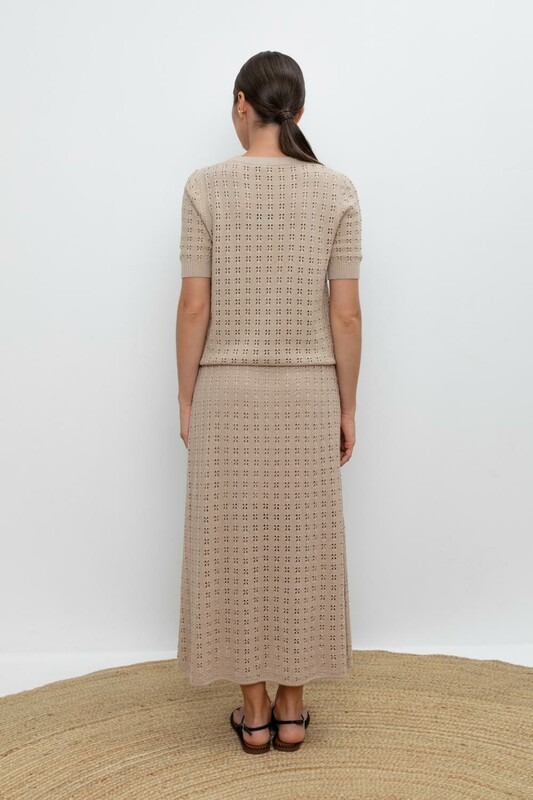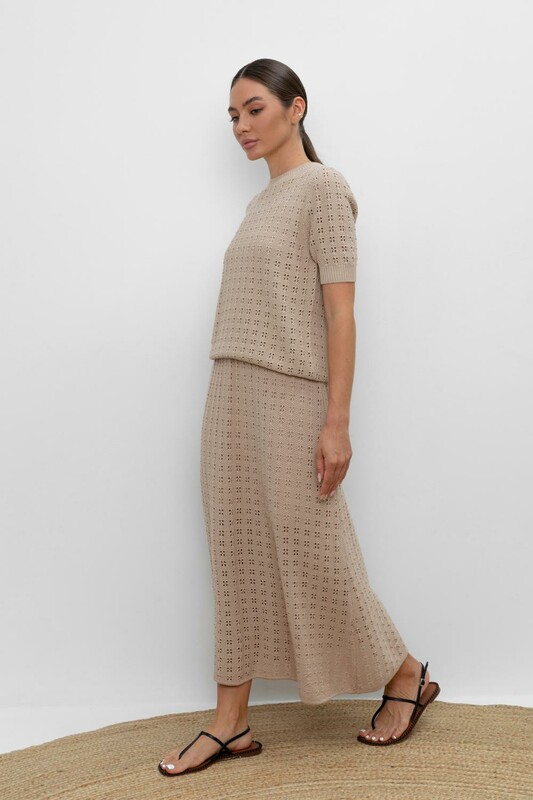 Вязаная ажурная юбка макси с подкладом. Состав 50% хлопок, 50% акрил. Благодаря акрилу в составе изделие не пилингуется.