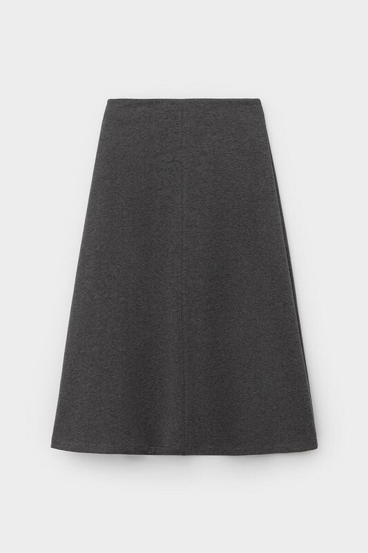 Трикотажная юбка длины миди из плотного гладкого трикотажа интерлок, произведенного из высококачественного гребенного хлопка. В составе 80% натурального хлопка и 20% полиэстера, при этом полиэстер ввязан внутрь по особой технологии и не соприкасается с кожей. Застегивается на потайную молнию. Изделие сохраняет цвет и форму после многократных стирок.