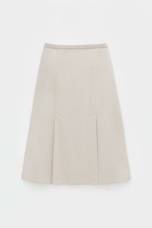 Юбка миди трапециевидной формы с отлетной деталью с разрезами из плотного гладкого трикотажа интерлок.