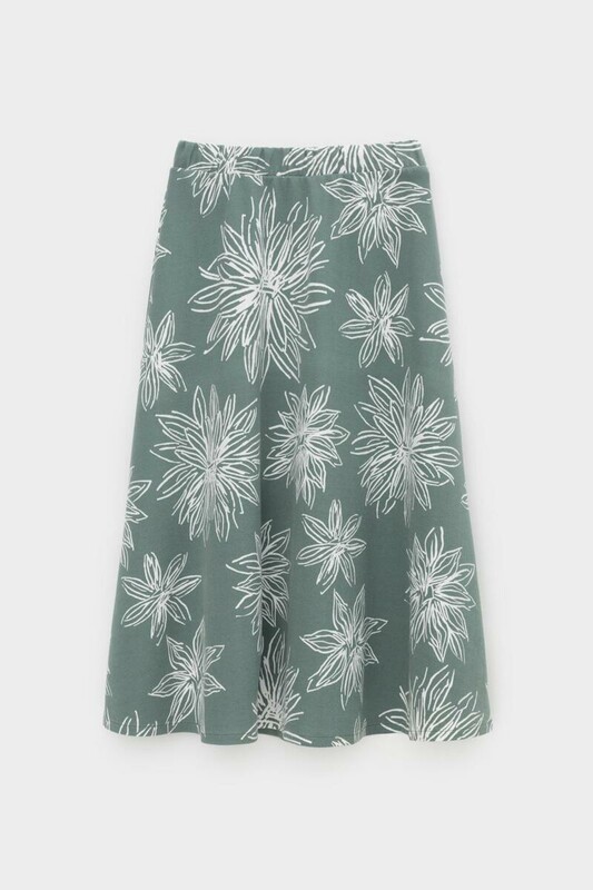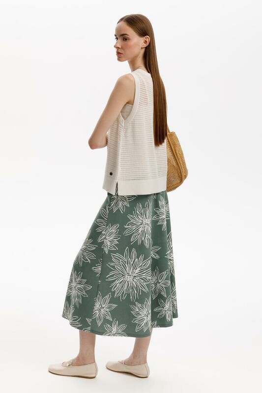 Удлиненная юбка расклешенного силуэта, изготовленная из премиального трикотажного полотна DOUBLE FACE. Мягкий на ощупь трикотаж выполнен из высококачественной гребенной пряжи, а его дизайн добавляет летнего настроения. Подберите летний образ, добавив блузу из этой коллекции.