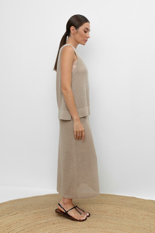 Вязаная ажурная юбка макси с подкладом. Состав 50% хлопок, 50% акрил. Благодаря акрилу в составе изделие не пилингуется.