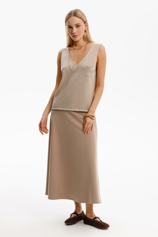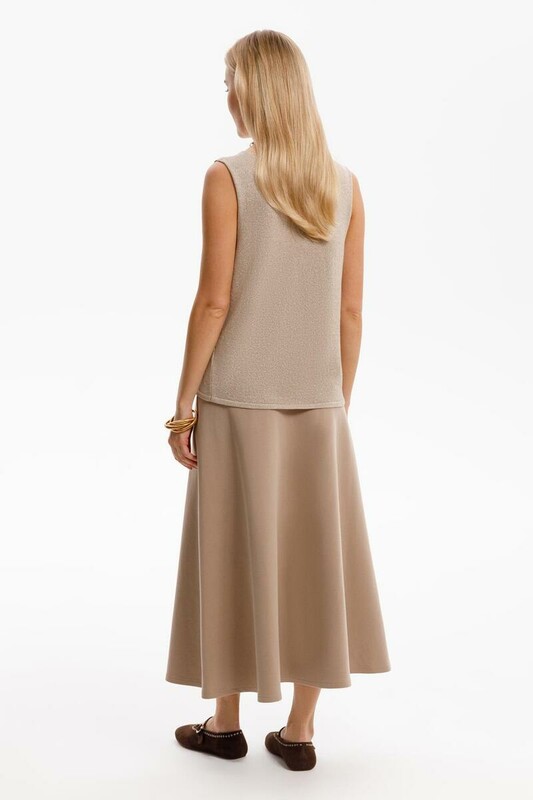 Удлиненная юбка расклешенного силуэта, изготовлена из премиального трикотажного полотна DOUBLE FACE с добавлением спандекса. Мягкий на ощупь трикотаж выполнен из высококачественной гребенной пряжи. Мягкий пояс с эластичной резинкой внутри придает изделию функциональность и комфорт.