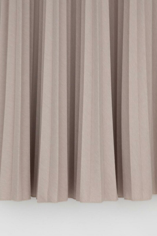 Юбка гофре выполнена из премиального трикотажа DOUBLE FACE. Характеризуется множеством узких складок, создающих объем и подвижность. Серо-бежевый цвет легко комбинируется с другими оттенками в образе.