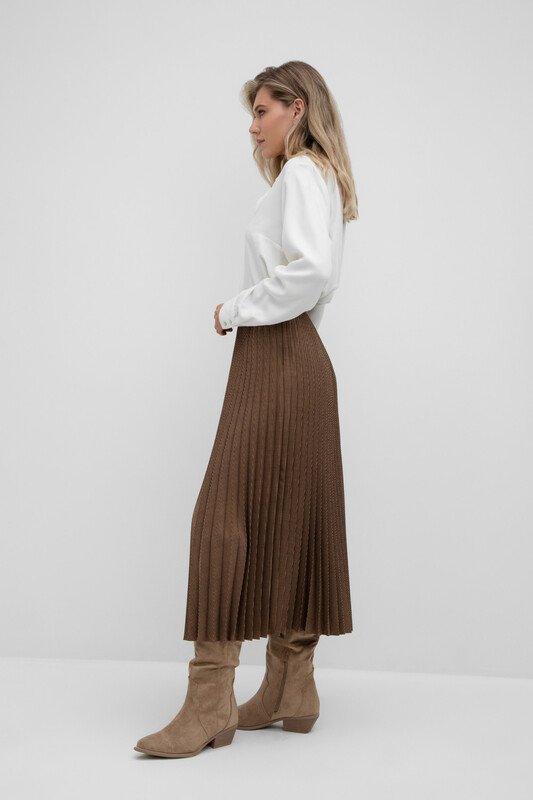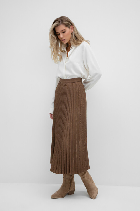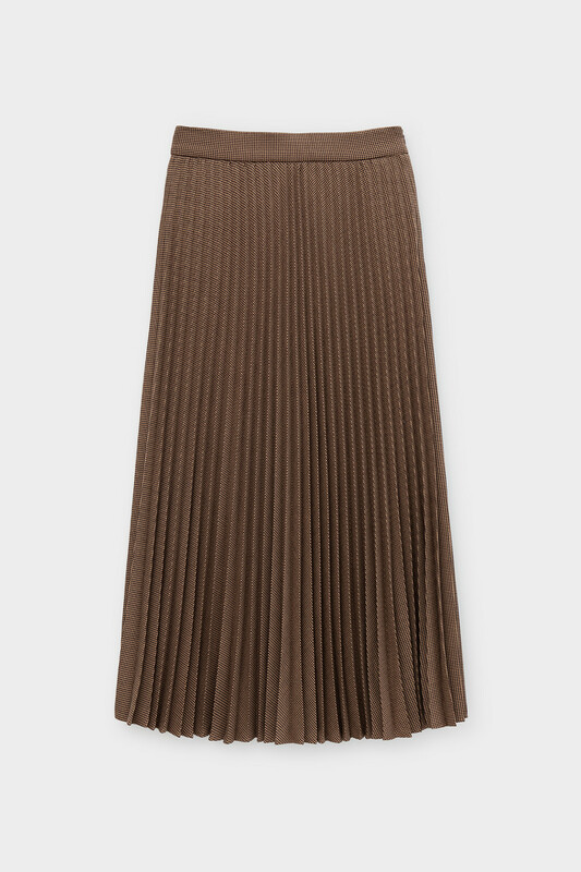 Юбка на поясе длиной миди со складками "гофре" из костюмной ткани с добавлением шерсти с узором "гусиная лапка", с застежкой на потайную молнию.