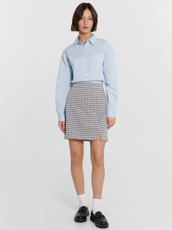 Стильная женская мини-юбка прямого силуэта. Выполнена из трикотажного академика. Неглубокий разрез спереди, подчеркивающие фигуру вытачки, лаконичная застежка на потайную молнию – ничего лишнего!