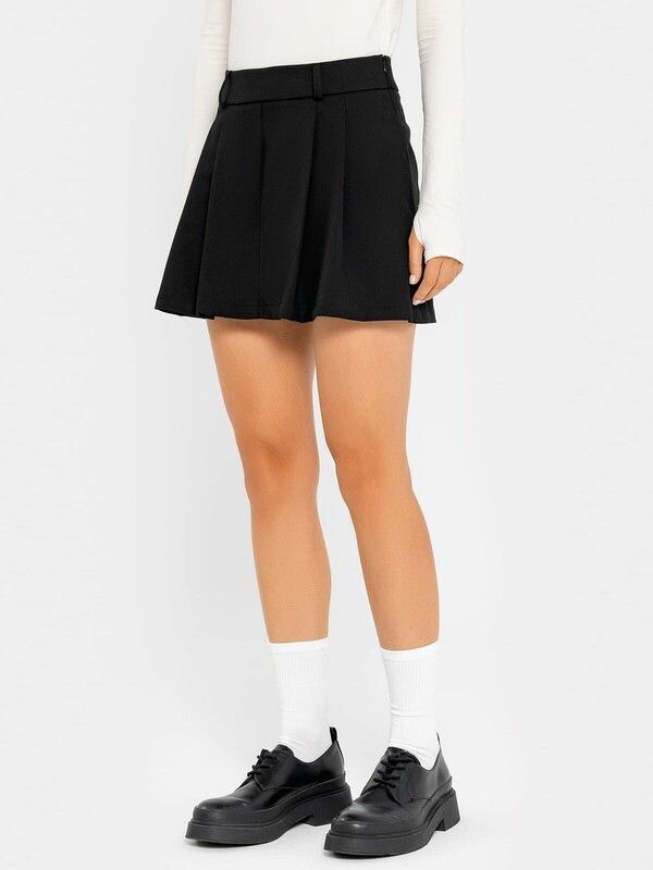 На поясе обработаны шлевки. На передней детали по 2 односторонние складки.