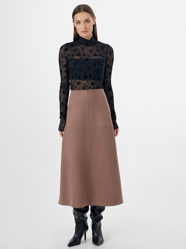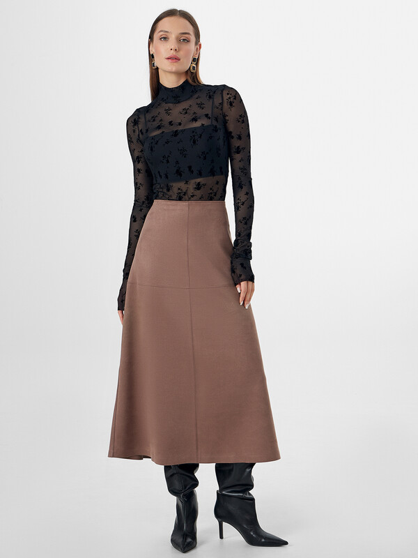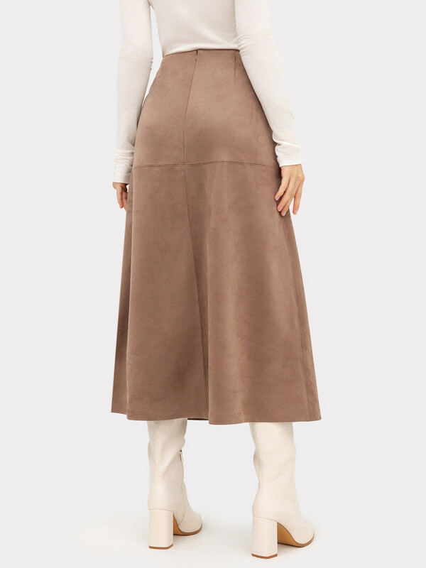 Женская юбка А-силуэта из трикотажного материала с фактурой "под замшу" — это элегантная и стильная модель, которая станет прекрасным выбором для создания утонченных образов на любой случай. Миди-длина подчеркивает женственность и универсальность изделия, а застежка-молния на спинке обеспечивает удобство и практичность. Материал с фактурой "под замшу" придает юбке благородный и изысканный вид, что делает её подходящей как для повседневных, так и для более торжественных случаев. Она легко сочетается с различными элементами гардероба — будь то топы, блузки или футболки, создавая стильные и разнообразные ансамбли. Идеальный вариант для тех, кто ценит качество и современный дизайн. Рекомендуем!