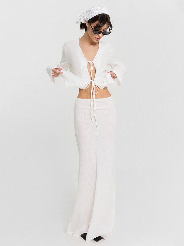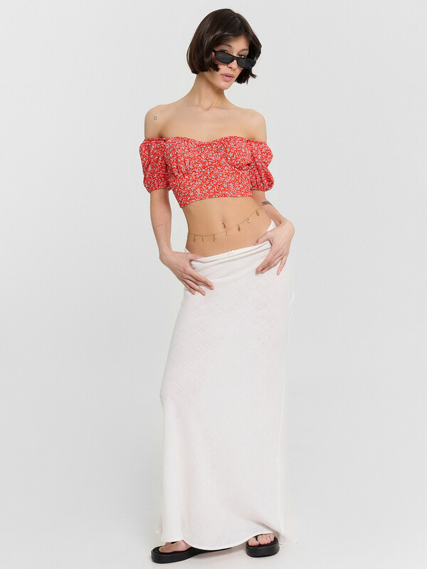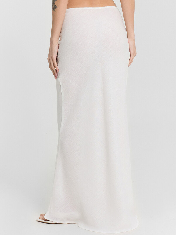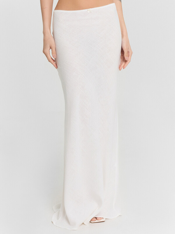 Юбка изготовлена из ткани. Юбка прямого силуэта, со средней посадкой длиной макси. Крой по косой. По верхнему срезу притачана эластичная тесьма (с зубом 8 мм (06/08) КТЕ6-8). Нижний срез обработан швом вподгибку с закрытым срезом.ДЕКОР - бантик (6737-0011А)