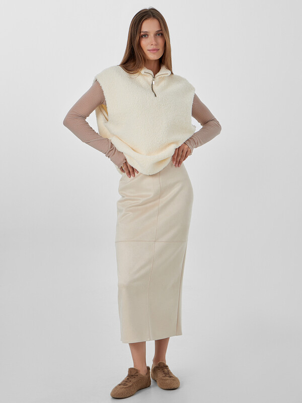 Низ юбки оформлен отрезной деталью и аккуратно обработан для сохранения идеальной формы. Благодаря составу с добавлением эластана юбка хорошо сохраняет форму и не мнется в течение дня, обеспечивая комфорт при длительной носке.