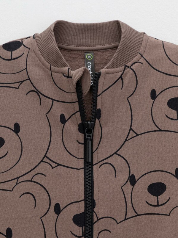 Тёплый бомбер для мальчика на молнии. Изготовлен из мягкого трикотажа с начёсом. Воротник, манжеты и пояс выполнены из эластичного полотна. По бокам два кармана. Изделие сохраняет цвет и форму после многократных стирок. Все трикотажные полотна производятся в соответствии с нормами швейцарского сертификата ЭкоТекс.