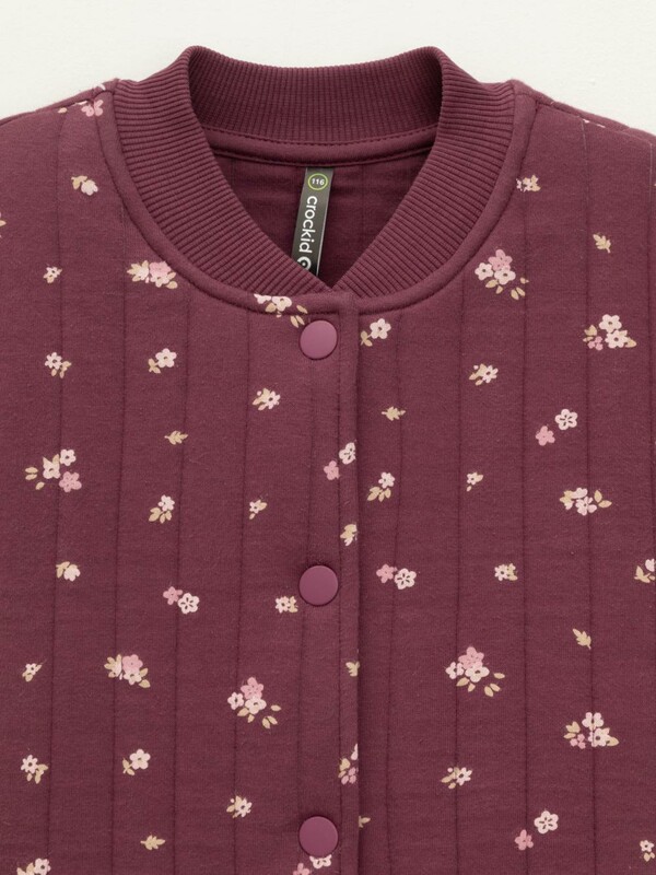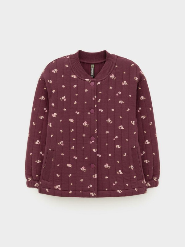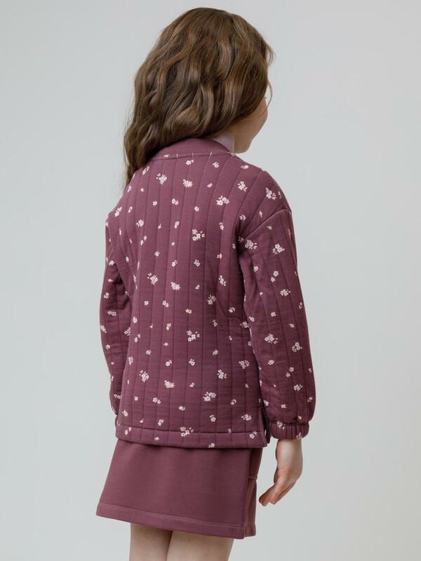 Бомбер на кнопках для девочки из стеганного трикотажного полотна. Удобные боковые карманы, трикотажный манжет по горловине. Оригинальный рисунок выполнен из стойких текстильных гипоаллергенных красителей. Изделие сохраняет цвет и форму после многократных стирок. Все трикотажные полотна производятся в соответствии с нормами швейцарского сертификата ЭкоТекс.