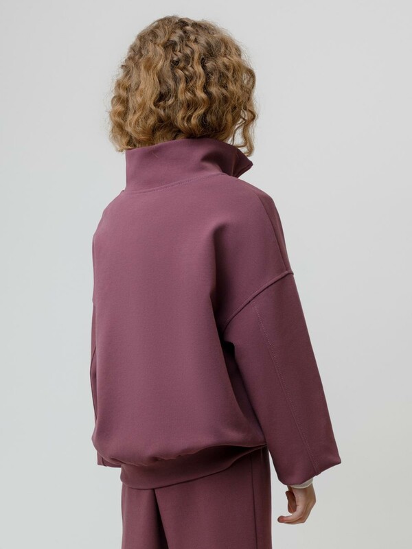 Бомбер для девочки со спущенными плечами и воротником-стойкой. Изготовлен из премиального трикотажного полотна DOUBLE FACE. Застёгивается на молнию. Манжеты и пояс выполнены из эластичного полотна. Изделие сохраняет цвет и форму после многократных стирок. Все трикотажные полотна производятся в соответствии с нормами швейцарского сертификата ЭкоТекс.