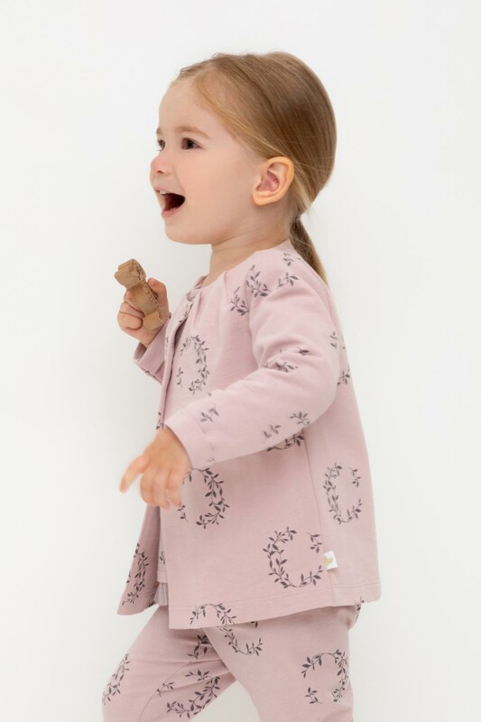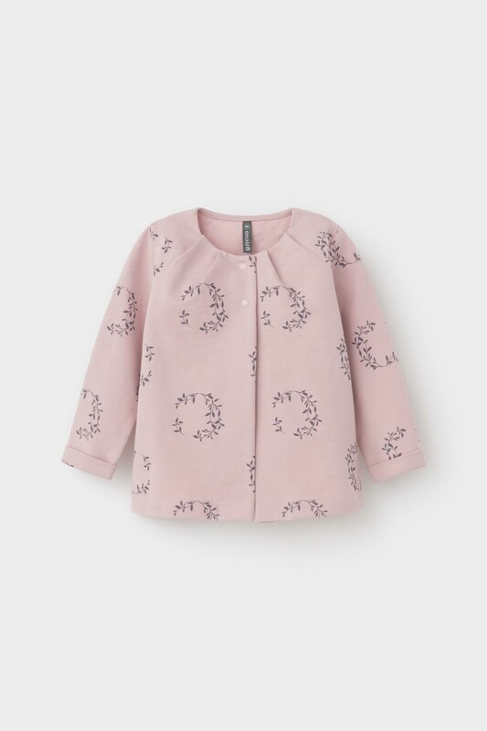 Трикотажный жакет для девочки из петельчатого футера. По горловине красивые складки. Застегивается сверху на кнопки.