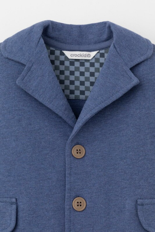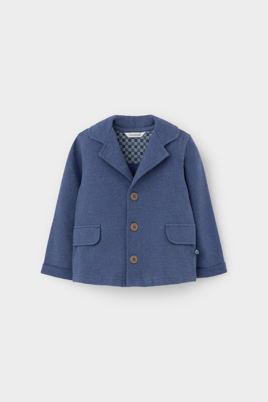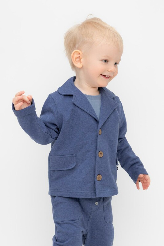 Трикотажный пиджак на пуговицах для мальчика, выполнен из петельчатого футера.