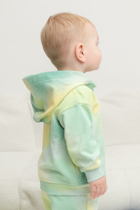 Трикотажная толстовка с капюшоном для мальчика из набивного петельчатого футера. Модель с боковыми карманами. Манжеты и пояс из эластичного трикотажа в рубчик.