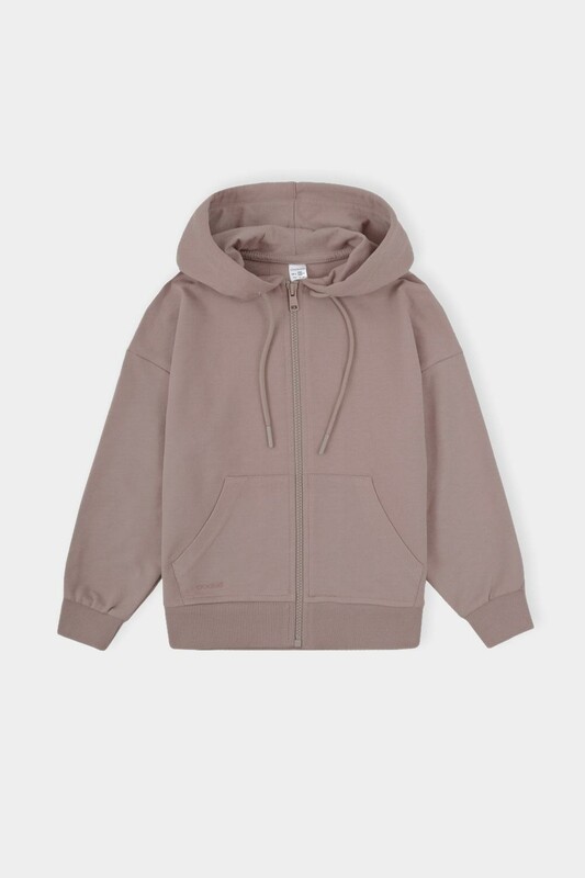 Трикотажная куртка на молнии из петельчатого футера. Спереди удобные накладные карманы. Манжеты и пояс из эластичного трикотажа в рубчик.