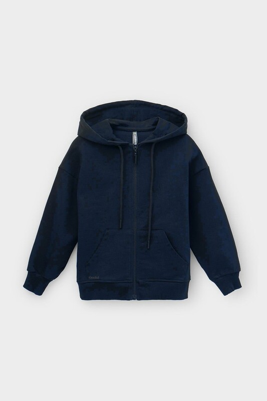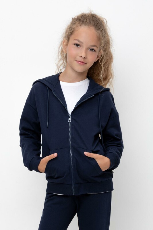 Трикотажная куртка на молнии из петельчатого футера. Спереди удобные накладные карманы. Манжеты и пояс из эластичного трикотажа в рубчик.