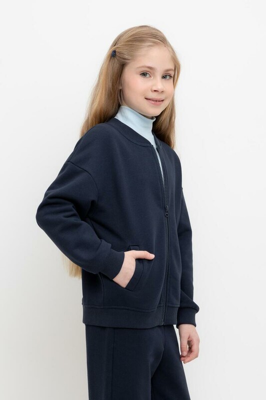 Трикотажная школьная куртка для девочки на молнии с карманами. Произведена из мягкого трикотажного футера трёхнитки. В составе 80% натурального хлопка и 20% полиэстера, при этом полиэстер ввязан внутрь по особой технологии и не соприкасается с кожей.