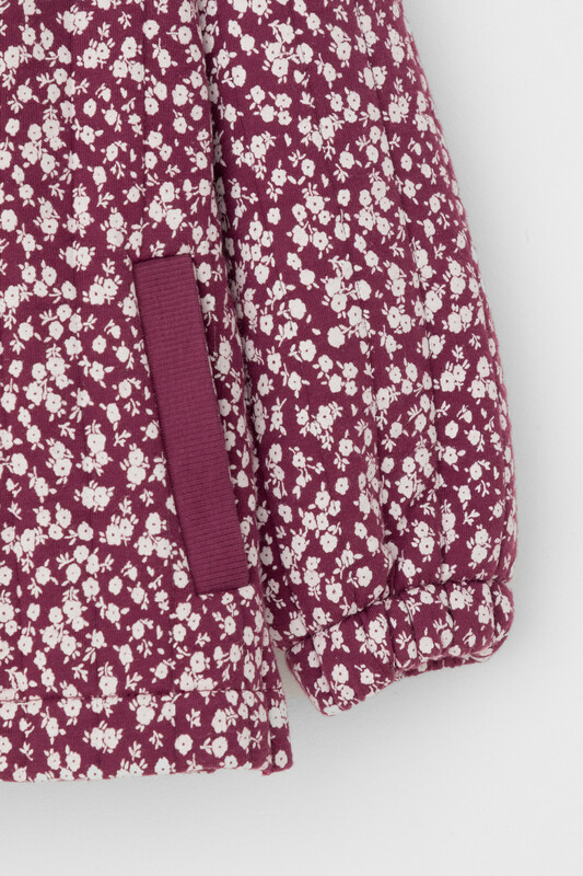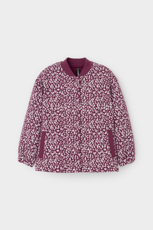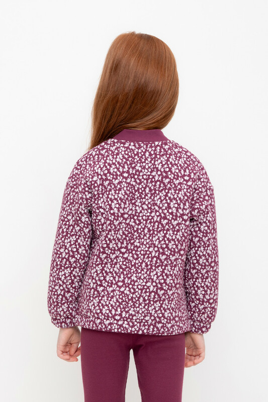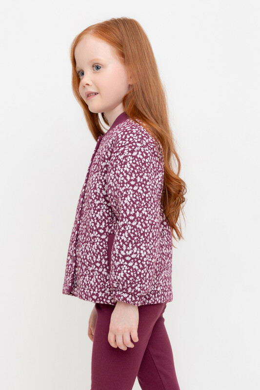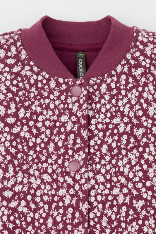 Бомбер на кнопках для девочки из стеганного трикотажного полотна. Удобные боковые карманы, трикотажный манжет по горловине. Оригинальная набивка выполнена из стойких текстильных красителей.