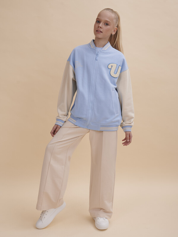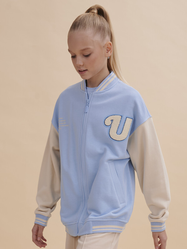 Бомбер для девочки в актуальном стиле преппи. Куртка комфортного объёма со спущенным плечом подаритребенку комфорт и свободу движений. Обработка горловины, низа и низа рукавов из резинки в университетском стиле. Модель выполнена из гладкой и тактильно приятной ткани, которая при этом держит форму. В составе ткани преобладает высококачественный хлопок — бомбер мягкий и великолепно пропускает воздух, давая коже дышать. Благодаря эластану куртка сохраняет отличную форму в течение продолжительного времени. Жакет декорирован нашивкой и принтом по переду, а также принтом на спинке. Принты эластичные и стойкие — без проблем переносят многочисленные стирки. Модель представлена в нескольких цветах: голубой, бежевый, розовый и черный. Его просто комбинировать с любыми брюками, джинсами. Размерная линейка: 1 (86); 2 (92); 3 (98); 4 (104); 5 (110); 6 (116); 7 (122); 8 (128); 9 (134); 10 (140); 11 (146). Бомбер подходит для девочек дошкольного и младшего школьного возраста, а также девочек-подростков. Такую куртку можно носить в садик, на учёбу, на прогулки, на отдых. Бомбер трикотажный детский подходит для круглогодичного применения: прохладным летом, осенью, зимой, весной и демисезон. Это чудесный подарок дочке, внучке, племяннице или сестре на любой праздник. Выбирайте нужный размер по таблице размеров на фото. Цвет товара на экране вашего устройства может отличаться от цвета изделия вживую.