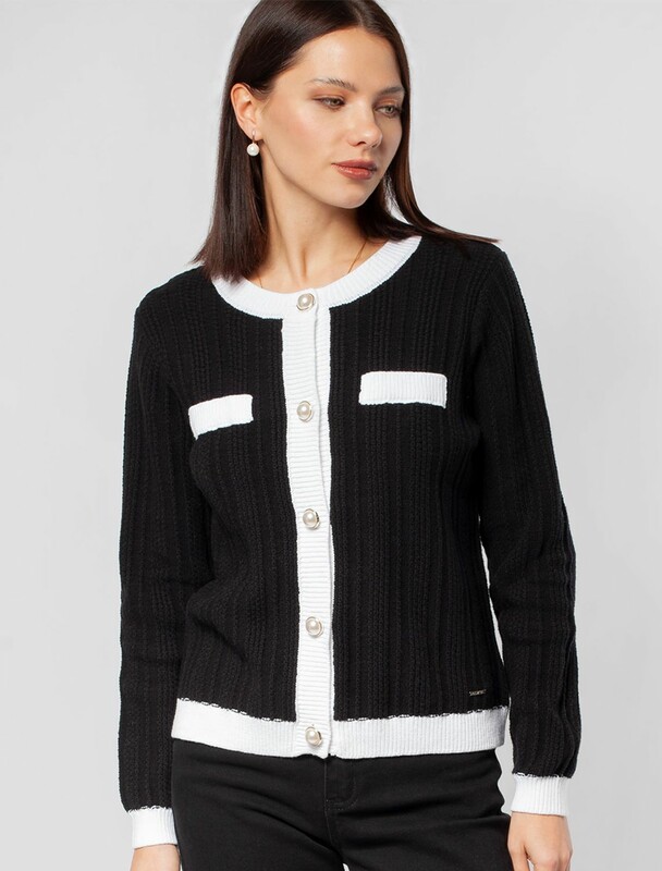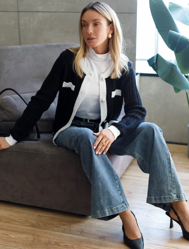 Жакет фактурной вязки выполнен из мягкой хлопковой пряжи с добавлением акрила. Изделие из такого материала исключительно приятно ощущается на коже, поэтому его комфортно носить даже на голое тело. Модель украсили золотистыми пуговицами с жемчужной вставкой. Сочетайте в костюме с юбкой D36.014 чтобы получить завершённый элегантный образ.