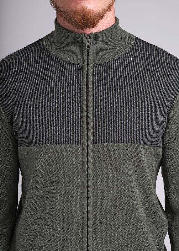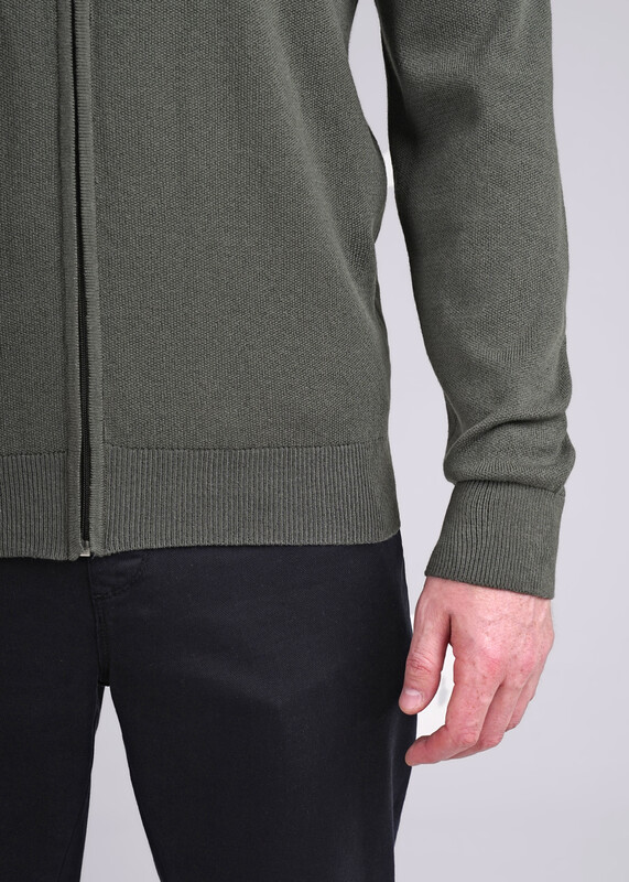 Жакет мужской на молнии с длинным рукавом и воротником стойкой. Модель дополнена рельефной вязкой на полочке. Данное изделие комфортно и практично в носке, прекрасно сохраняет тепло. Можно скомбинировать с брюками или джинсами.