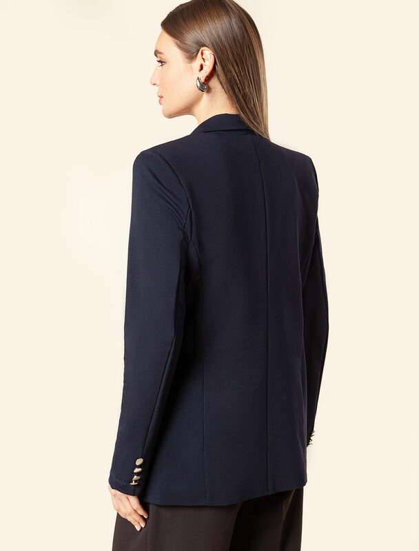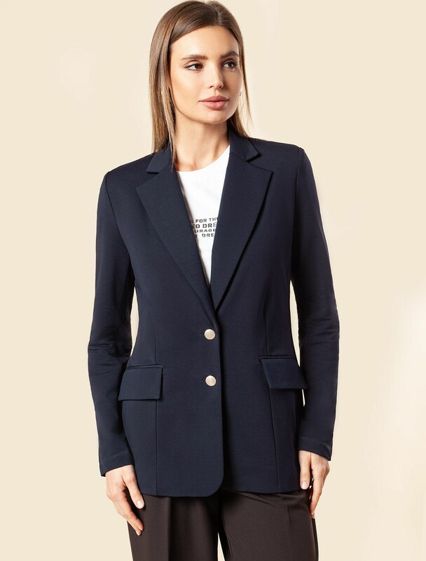Жакет выполнен из тонкого футера с добавлением ПЭ, что способствует формоусточивости и стойкости цвета. Жакет на контрастной подкладке из 100% хлопка. Ярким акцентом этой модели являются 2 металлические пуговицы золотистых оттенков. Имеются боковые накладные карманы. Совет стилиста: Идеальная модель для не строгого офисного дресс-кода.