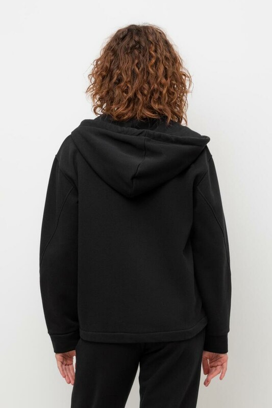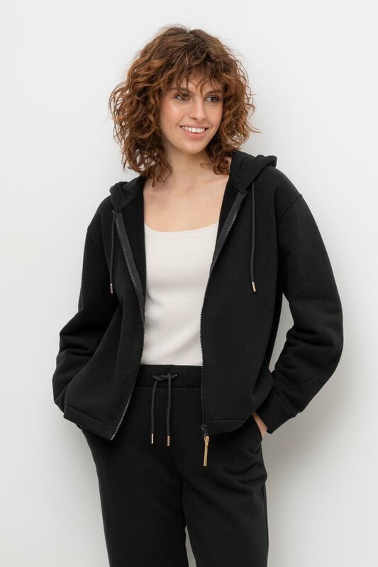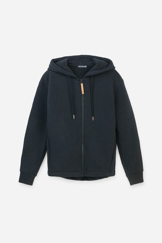 Тёплая трикотажная куртка на молнии с глубоким капюшоном. Произведена из мягкого трикотажного футер трёхнитки с начёсом. В составе 80% натурального хлопка и 20% полиэстера, при этом полиэстер ввязан внутрь по особой технологии и не соприкасается с кожей. В капюшоне мягкий подклад.