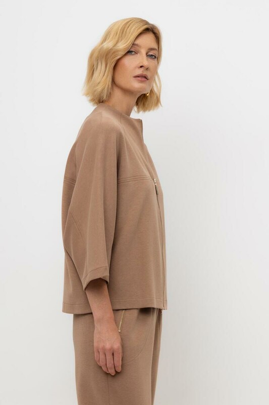 Жакет из высококачественного трикотажного полотна. За счет фактуры переплетения и специальных обработок сохраняет силуэт и форму. Хлопок в составе добавляет комфорт при носке. В сочетании с брюками из этой коллекции вы создадите расслабленный образ для летних дней.