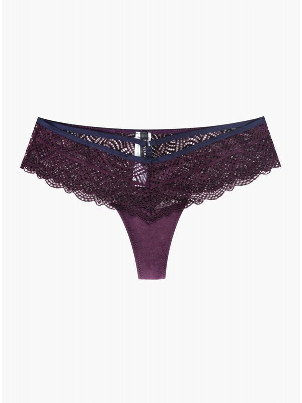 Трусы-стринги кружевные фиолетовые из хлопка, на мягкой резинке.