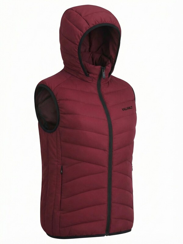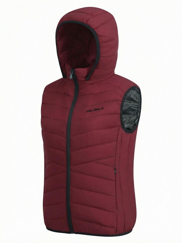 Женский лёгкий стёганый жилет Valianly с капюшоном бордового цвета 9636_2Bo